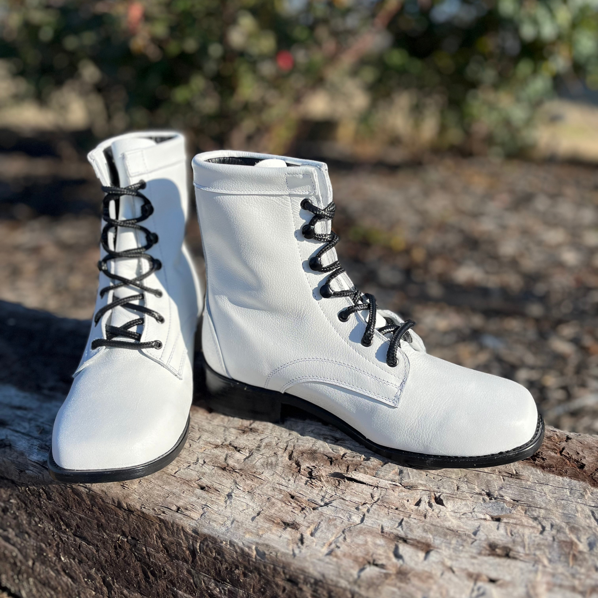 Women’s White Lace-Up Boots